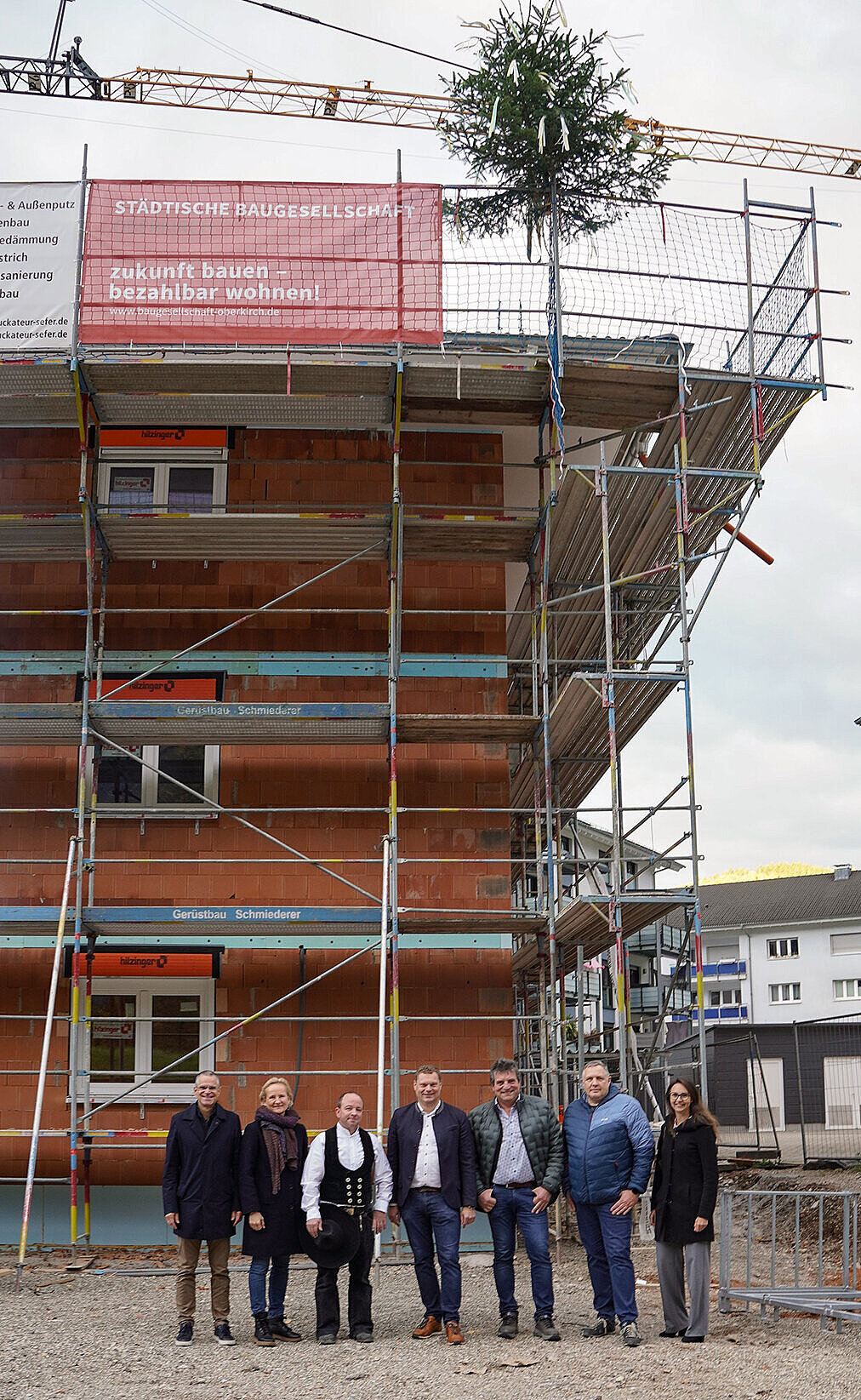 „Wir feiern heute zünftig Richtfest. Im Badischen heißt es ja immer: wer recht schafft, darf recht feiern. Mein Dank gilt allen Handwerksfirmen für die großartige Arbeit”, freut sich Geschäftsführer Thomas Meier. Den traditionellen Höhepunkt bildete die Aufstellung des Richtbaums aus dem Ödsbacher Wald. Die Fertigstellung des Mehrfamilienhauses ist für Ende des Jahres geplant.
